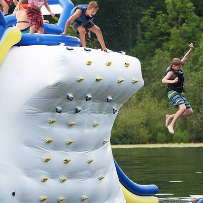 A favorite for commercial camps and resorts! The gigantic inflatable 14′ Iceberg mountain is a climbing wall and waterslide all in one, providing enormous fun as kids and adults climb 14 feet to the top, then slide down into the water for an all day thrill.