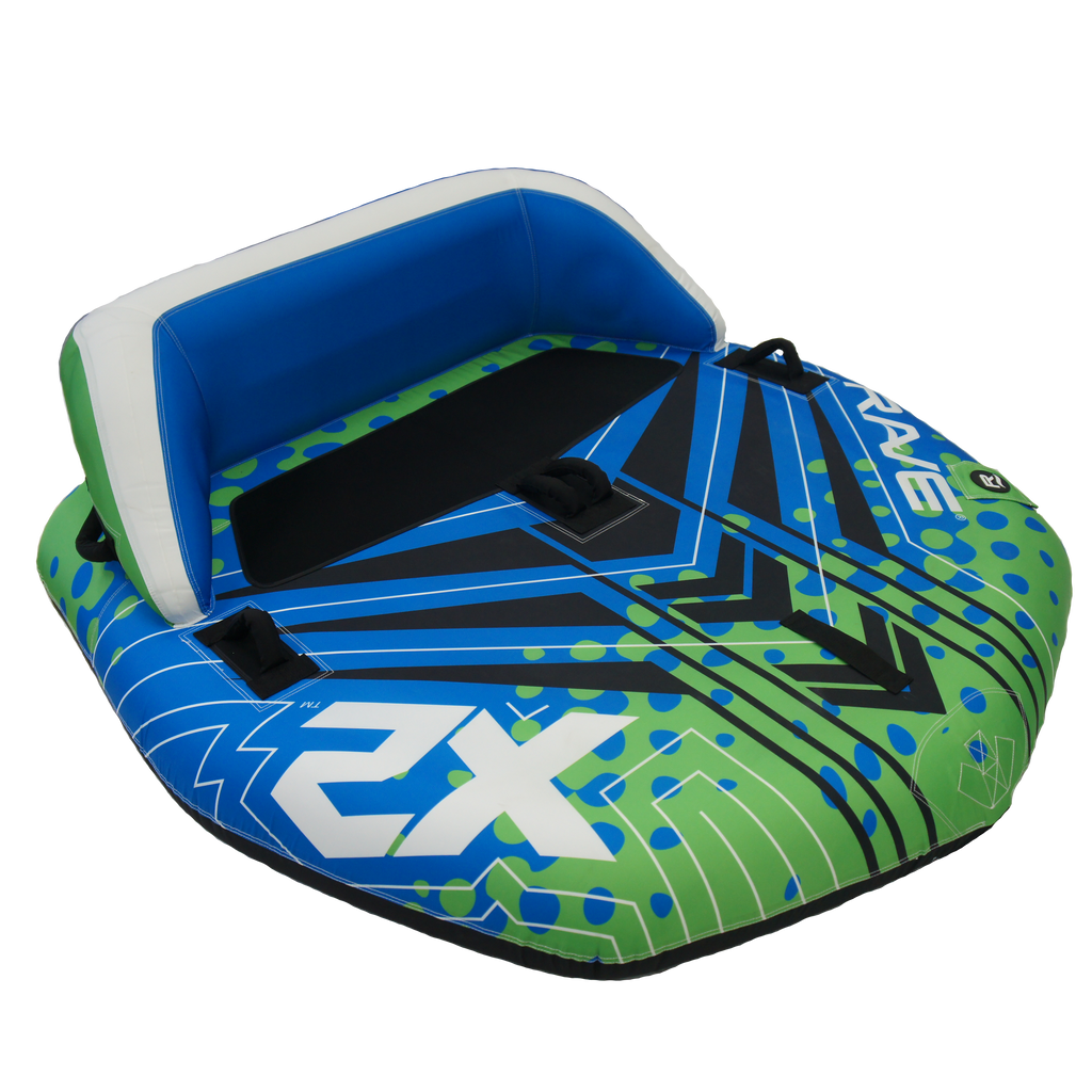 - YOUR NEW FAVORITE TUBE: The RAVE Sports X2 Boat Towable Tube features a couch-style seat for 2 riders, it's perfect for whipping around on the waves while keeping riders secure or simply lounging next to the boat.